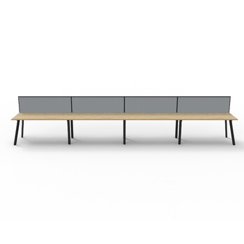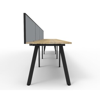 Eternity 4 Person Single Sided Workstation With Grey Screen Black Frame Natural Oak Top - 4800mm W x 780mm D x 730mm H