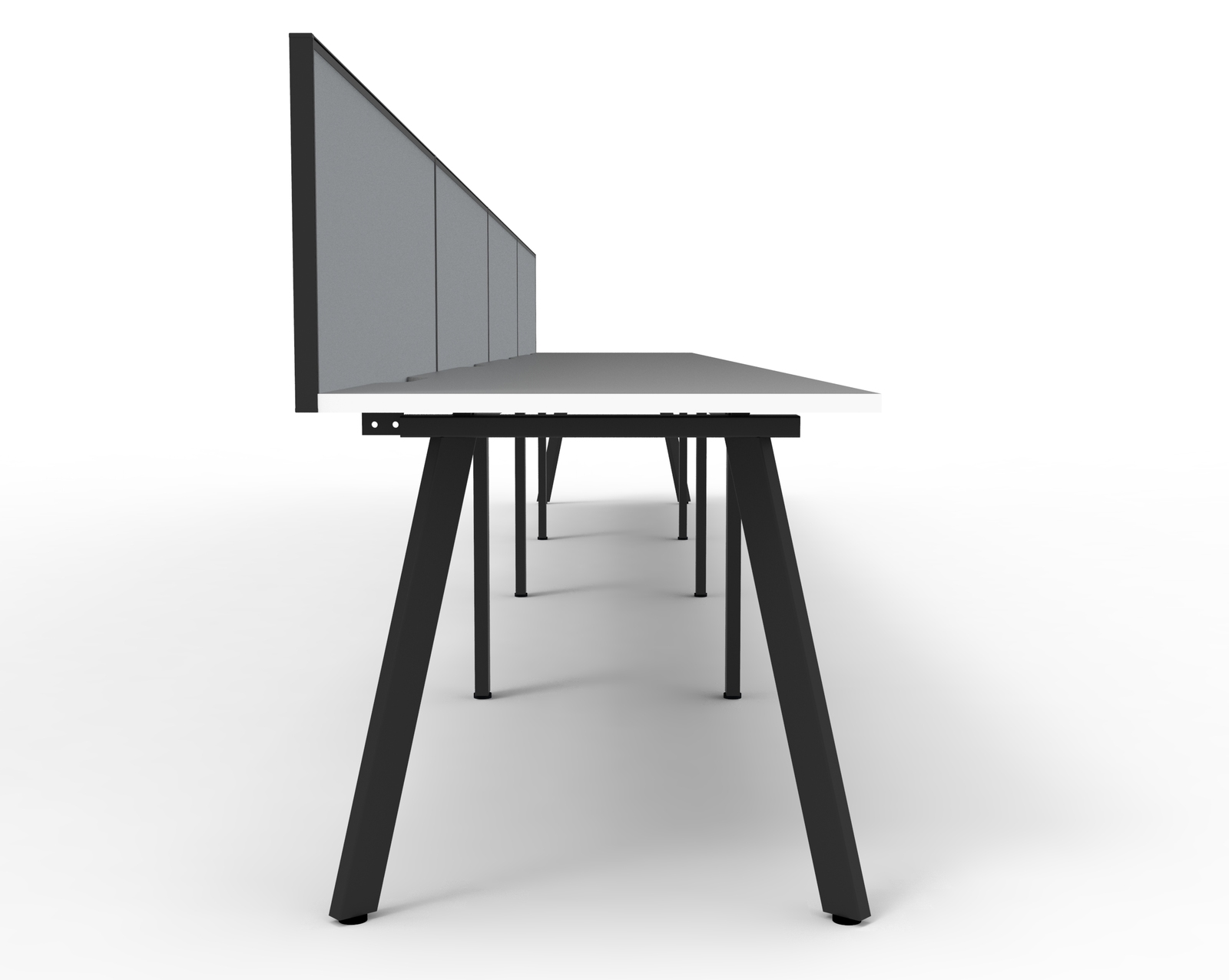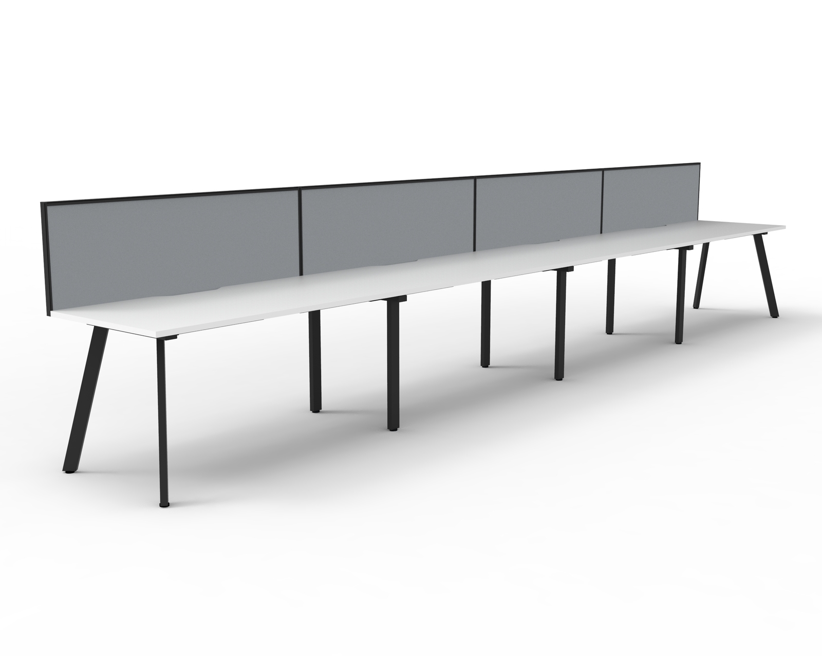Eternity 4 Person Single Sided Workstation With Black Screen Black Frame White Top - 4800mm W x 780mm D x 730mm H