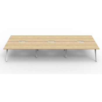 Eternity 6 Person Double Sided Workstation White Frame Natural Oak Top - 5400mm x 1530mm x 730mm
