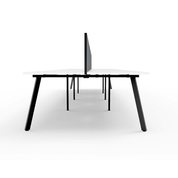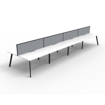 Eternity 8 Person Double Sided Workstation With Grey Screen Black Frame White Top - 4800mm W x 1530mm D x 1200mm H