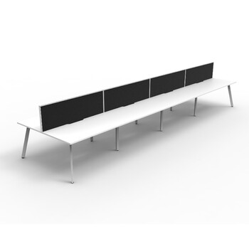 Eternity 8 Person Double Sided Workstation With Grey Screen White Frame White Top - 4800mm W x 1530mm D x 1200mm H