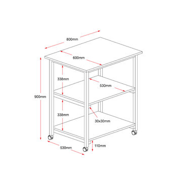- Express 3 Tier Mobile Ironstone Trolley features a steel frame with melamine top