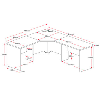 - 2100W x 1800W x 600D x 730H (210cm x 180cm x 60cm)