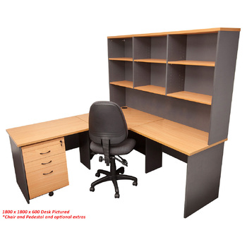 - 1800W x 1800W x 600D x 730H Workstation with 1800mm (180cm) wide Hutch (1070mm High) (3 columns 6 shelves)