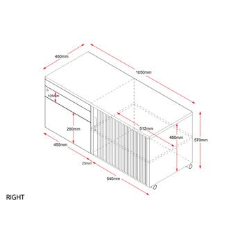 1050mm Wide X 460mm Deep X 570mm High