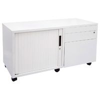 Express Mobile Caddy Drawers and Tambour features two standard drawers with filing drawer and tambour door storage with centre shelf. This mobile storage unit is perfect fit for a modern office in white satin and with a 10 year warranty.