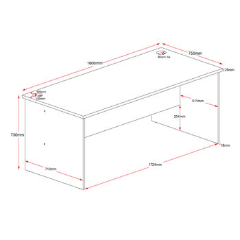 - 1800mm (180cm) Wide x 750mm (75cm) Deep x 730mm (73cm) High