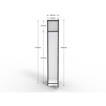 1850mm High x 305mm Wide x 455mm Deep