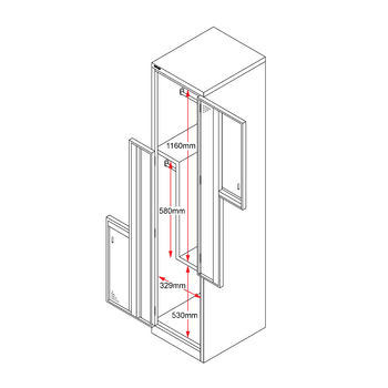 The Step locker allows for 2 hanging compartments in the one unit, saving valuable space. Locking doors with full length door stiffeners and fully riveted construction for extra strength