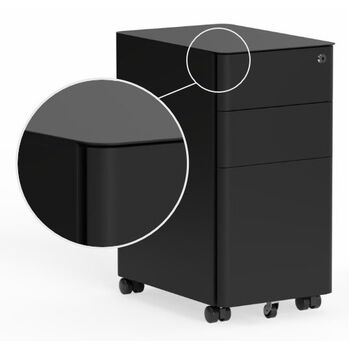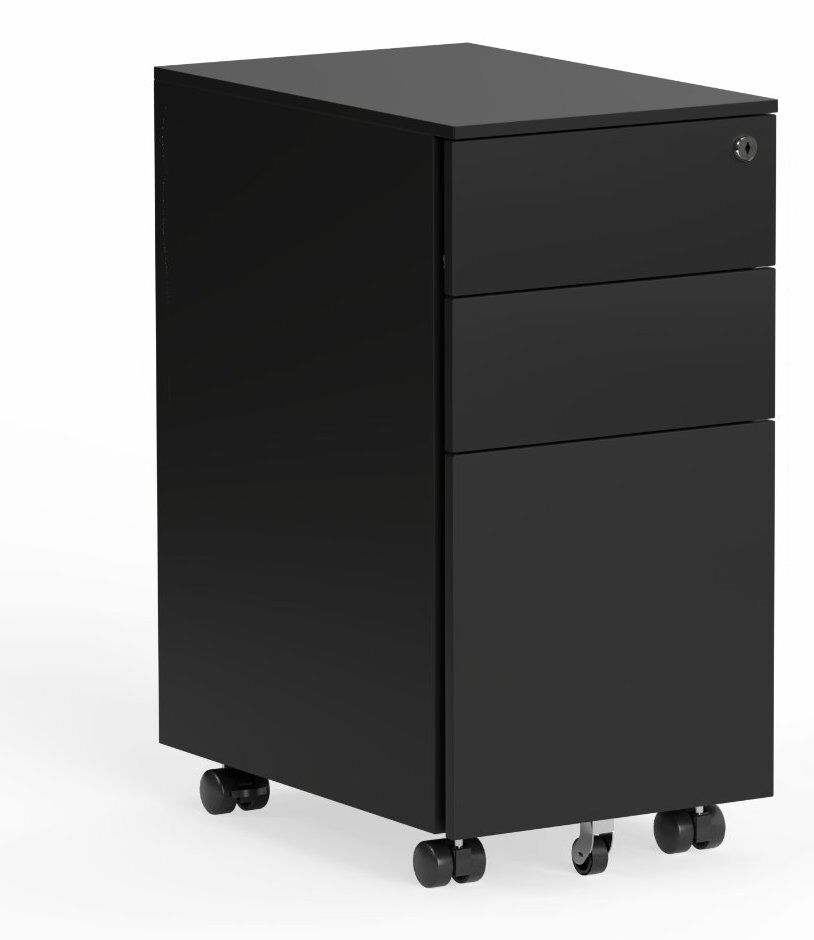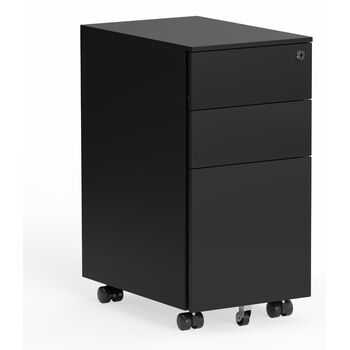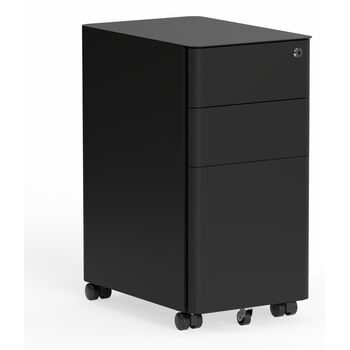 | The Tempo Mobile Pedestal (Regular) in Black Graphite delivers smart, slimline under-desk storage with a refined, modern design. Featuring durable metal construction with 2 storage drawers and 1 filing drawer with single suspension file arm. Pairs perfectly with the Klass, Agile, Anvil and Axis desk ranges. |