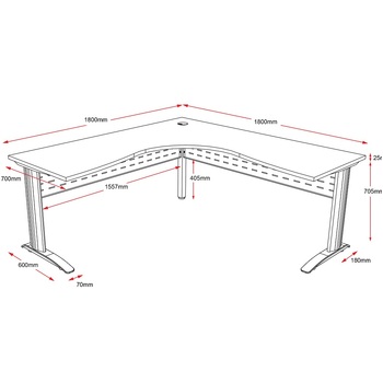 - 1800W x 1500W x 700D x 730H - Desk top is universal and can be flipped for 1800mm (180cm) side on left or right