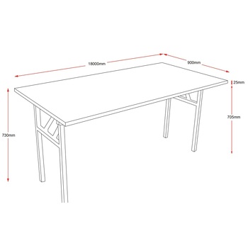 - 1800mm (180cm) Wide x 900mm (90cm) Deep x 730mm High