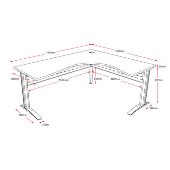 - 1800W x 1500W x 700D x 730H (Desk top is universal and can be flipped for 1800mm (180cm) side on left or right)