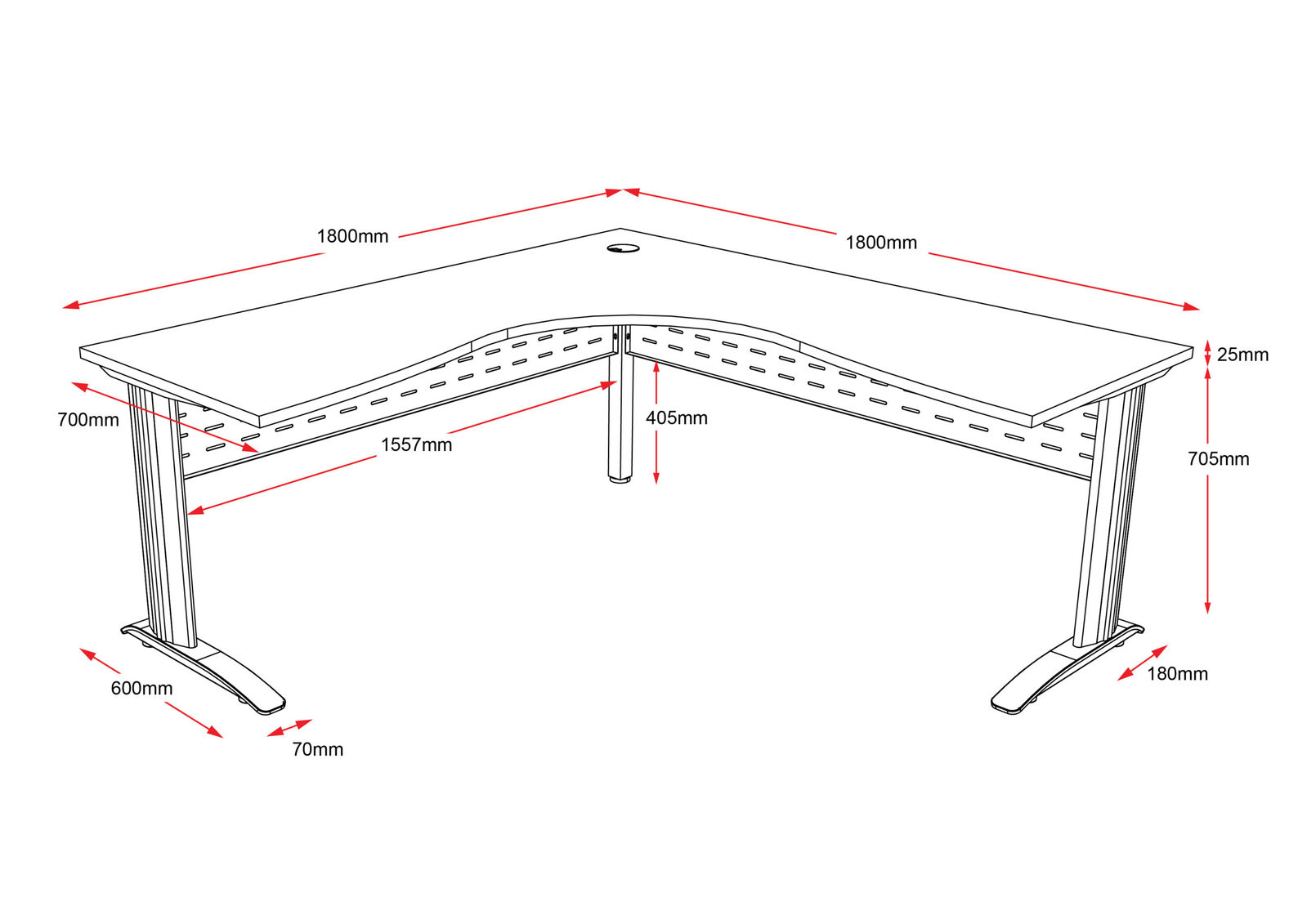 - 1800W x 1500W x 700D x 730H (Desk top is universal and can be flipped for 1800mm (180cm) side on left or right)