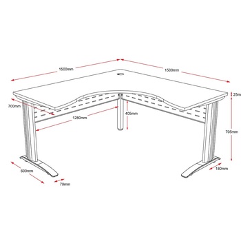 - 1800W x 1500W x 700D x 720H - Desk top is universal and can be flipped for 1800mm (180cm) side on left or right