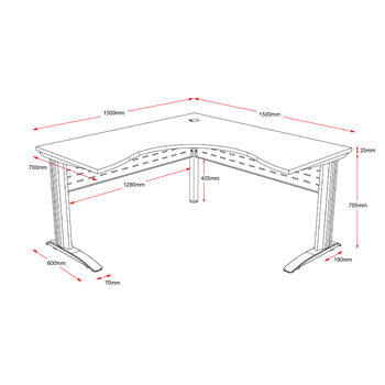 - 1800W x 1500W x 700D x 720H (Desk top is universal and can be flipped for 1800mm (180cm) side on left or right)