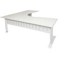The Rapid White Corner Office Desk Workstation features a heavy duty frame with modesty panel and 1 cable entry hole on the desk top.