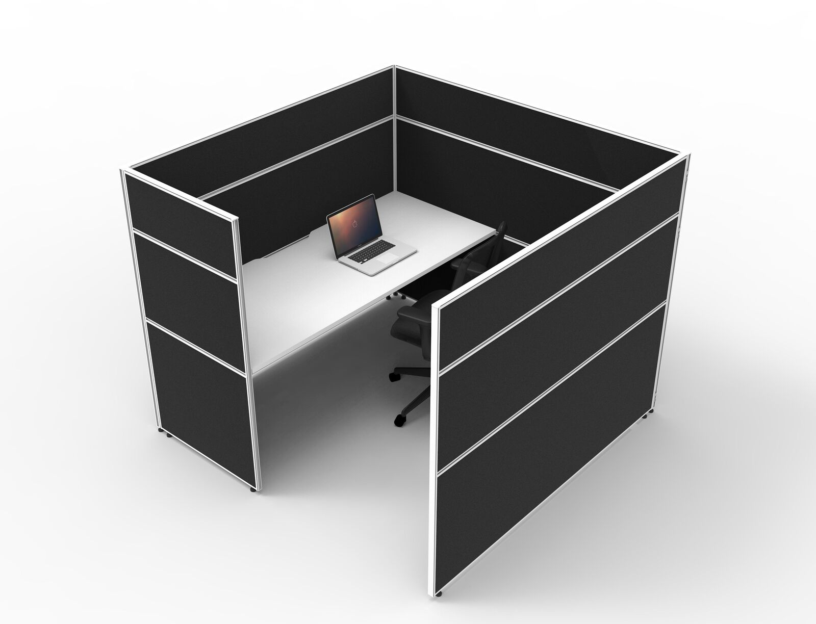 SHUSH30 1 Person Cubicle Black Screen White Top [Top: 1500mm W x 750mm D x 25mm T, Screen Height: 1500mm Tall]