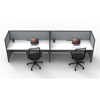 SHUSH30 2 Person Side by Side Cubicle Grey Screen White Top [Screen Height: 1500mm] [size: 1800mm W x 750mm D x 25mm T]