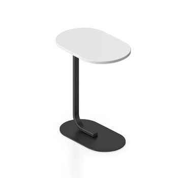This side table offers stability and support with its powercoated underframe and oval base plate, making it an ideal choice for various settings.